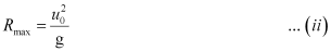 The maximum range (Rmax) is achieved by the bullet when it is fired at an angle of 45°with the horizontal, that is,