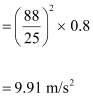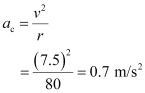 Q31 :A cyclist is riding with a speed of 27 km/h. As he approaches a circular turn on the road of radius 80 m, he applies brakes and reduces his speed at the constant rate of 0.50 m/s every second. What is the magnitude and direction of the net acceleration of the cyclist on the circular turn?