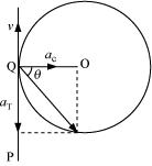 This acceleration is along the tangent at Q and opposite to the direction of motion of the cyclist.