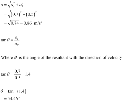 Since the angle between ac and aT is 90°, the resultant acceleration a is given by:
