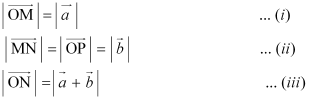 (b) Let two vectors and be represented by the adjacent sides of a parallelogram OMNP, as shown in the given figure.