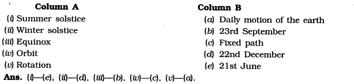 Answer: (a) Summer solstice. The Northern Hemisphere is tilted towards the sun on 21st June. As the rays of the sun fall directly on the Tropic of Cancer, these areas receive more heat. But the areas size to the poles receive less heat due to the slanting rays of the sun. The North Pole is inclined towards the sun the places beyond the Arctic Circle experience continuous daylight for about six months. Since a large area of the Northern Hemisphere is getting light from the sun, it is summer in the regions north of the equator. The longest day and the shortest night at these places occur on 21st June. These cAnditions are reversed in the Southern Hemisphere at this time. It is winter season there having longer nights and shorter days. This position of the earth is known as the summer solstice.