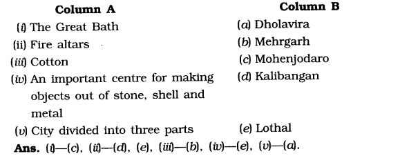 Answer: Lothal and Kalibangan were cities with fire altars.