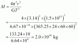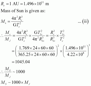 Q4 :Io, one of the satellites of Jupiter, has an orbital period of 1.769 days and the radius of the orbit is 4.22 x 108 m. Show that the mass of Jupiter is about one-thousandth that of the sun.