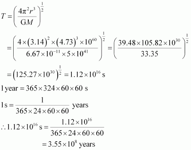 Q5 :Let us assume that our galaxy consists of 2.5 x 1011 stars each of one solar mass. How long will a star at a distance of 50,000 ly from the galactic centre take to complete one revolution? Take the diameter of the Milky Way to be 105 ly.