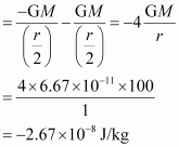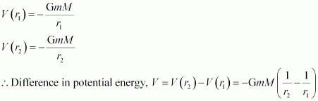 (d) Gravitational potential energy of two points r2 and r1 distance away from the centre of the Earth is respectively given by: