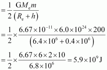 Q19 :A satellite orbits the earth at a height of 400 km above the surface. How much energy must be expended to rocket the satellite out of the earth’s gravitational influence? Mass of the satellite = 200 kg; mass of the earth = 6.0 x 1024 kg; radius of the earth = 6.4 x 106 m; G = 6.67 x 10-11 N m2 kg-2.