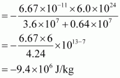 Q22 :As you have learnt in the text, a geostationary satellite orbits the earth at a height of nearly 36,000 km from the surface of the earth. What is the potential due to earth’s gravity at the site of this satellite? (Take the potential energy at infinity to be zero). Mass of the earth = 6.0 x 1024 kg, radius = 6400 km.