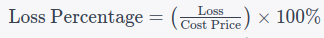 Loss percentage is the percentage of loss incurred in relation to the cost price. It is calculated using the following formula: