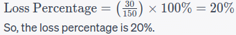 For example, if you have a loss of $30 on an item with a cost price of $150, the loss percentage would be: